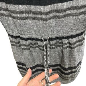 ACE & JIG ~ Grey and Black Striped Dress with Drawstring Waist Pockets 3/4 sleeve. Size small. In good preowned condition. Missing materials tag.