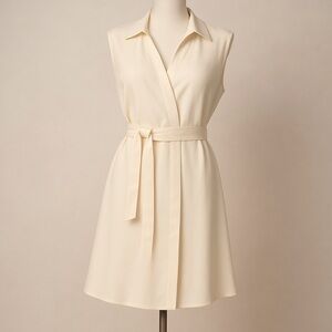 Elevate your wardrobe with this stylish sleeveless, belted midi dress from H&M. Sleeveless & knee-length featuring a V- neck button front closure and a woven viscose/poly blend for an amazingly soft texture. The light, breathable fabric ensures comfort, while the cinched waistbelt adds a flattering touch. Perfect for both casual outings and dressy