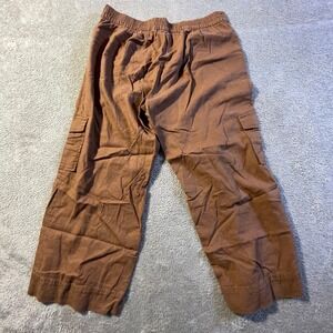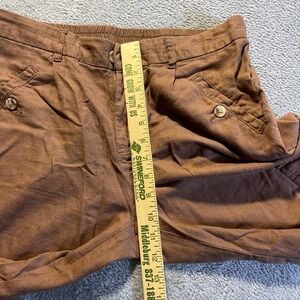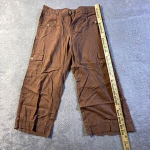 Cato Women's Brown Linen Blend Cargo Capri Pants Medium Elastic Cargo Pockets
