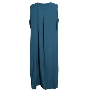 Chic teal midi dress with a sleeveless design. Perfect for versatile styling.