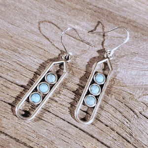 Modernist Geometric Turquoise Blue Stone Silver Necklace Earrings Jewelry Set