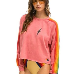 Aviator Nation Pink Rainbow Stripe Sweatshirt