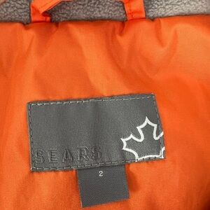 This vibrant orange raincoat from Sears is crafted from a water-resistant synthetic fabric, making it ideal for wet weather. It features a hood for added protection and a sporty design that ensures both style and functionality.