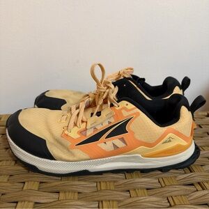 Stylish Altra athletic shoes. Features vibrant orange and black design. Perfect for running and training on the trails. Minor wear but no big flaws- see photos, in good used condition