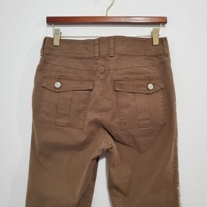 Sundance Melbourne Embroidered Cargo Jogger Pant Army Green Women’s Sz 6 Utility. Stylish brown pants featuring intricate embroidery on the sides. Perfect for casual wear.