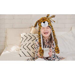 Kids Tiger Animal Hat with Ears Moving Jumping Pop Up Beating Plush Holiday
