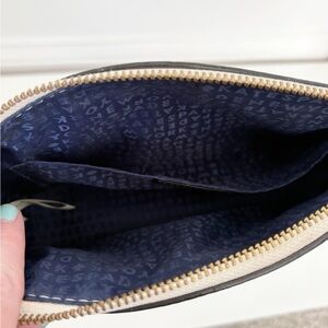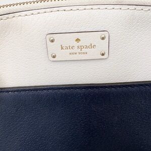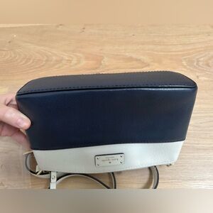 Elegant Kate Spade crossbody with a sleek two-tone design. Features a cream top and navy blue bottom. Ideal for everyday use. Good condition. Slight wear noted on inner side of strap as seen in last picture. Smoke and pet free home.