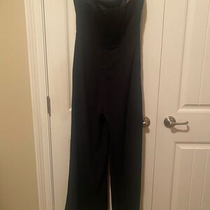 Elegant black strapless jumpsuit. Perfect for any occasion. Comfortable and stylish.
