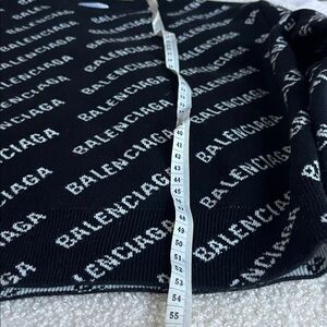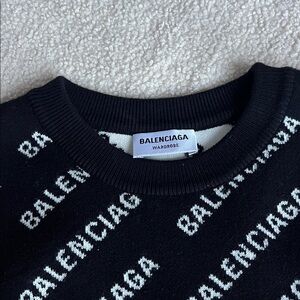 Stylish Balenciaga crewneck with all-over logo design. Classic black and white color scheme. Perfect for a modern look.Wonrn 1time!