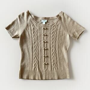 Ann Taylor Loft Cable Knit Short Sleeve Sweater Women's Size L Cashmere Wool