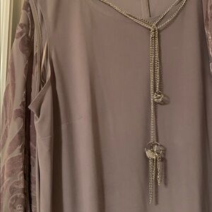 2-piece set: sleeveless dress with built in silver necklace paired with a jacquard jacket