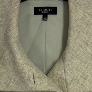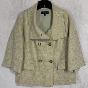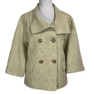 Talbots Double Breasted Blazer Jacket Size 8 100% Wool Yellow Green Boxy Crop