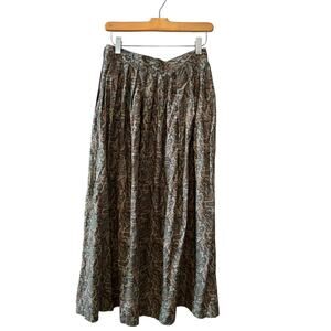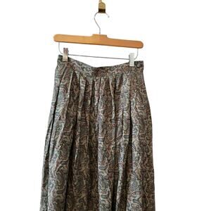 Vintage 80s Charter Club Classic Paisley Print Pleated Rayon Midi skirt, size 6 but fits like an XS/S. 100% rayon in a sage green color, side button closure and soft pleats. Great modest work skirt, pair with a blazer for a perfect Spring outfit!