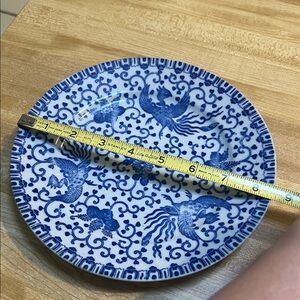 # 0770** 1950 Japan White & Blue Decorative Plate Dish Phoenixes Birds”9X8 1/2”