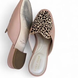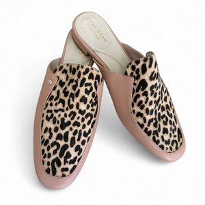 Stylish leopard print mules with blush nude pink leather trim. Comfortable slip-on grand design.