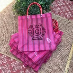 New. Multiple available; see separate listings. Measurements in photos. This is the smallest of the four sizes. I have some listed in the other sizes as well. The handles vary in shades of red. Not all bags are exact on measurements when laying flat depending on how they were folded as far as the bottoms and sides if that makes sense. Some may have minor imperfections in the mesh fabric, like a dark spot as shown in the last photo, and not all came folded exactly the same as far as the bottoms and sides.