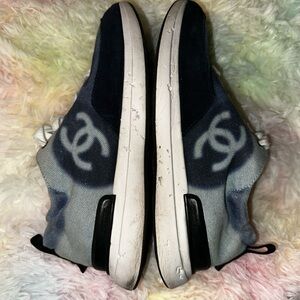 Chanel Blue Denim CC Logo Sneakers Size 38