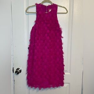 This stunning pink sheath dress from Anthropologie is perfect for a cocktail night out. Featuring a sleeveless halter neckline, it offers a chic and elegant silhouette. The lightweight fabric and dynamic ruffled details add a touch of sophistication and movement to your ensemble.