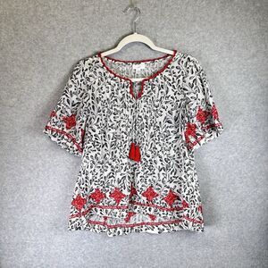 J Jill Prairie Peasant Tunic Top Embroidered Sz S Boho Tassel Tie Cottage Cotton
