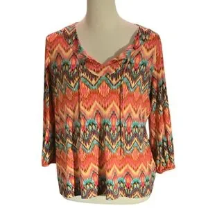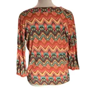 Jones New York Sport 3/4 Sleeve Knit Top Blouse Women Sz L Colorful Lightweight
