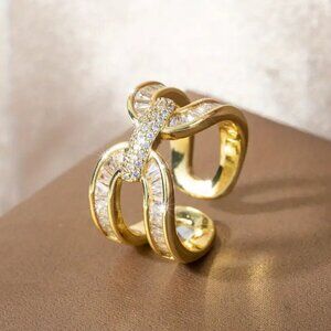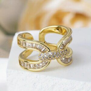 Adjustable Bling Statement Ring Baguette Cut and Channel Set 1417