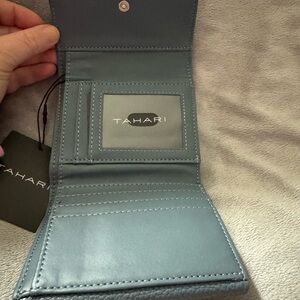 Chic Tahari wallet in a stylish blue gray color. Features a textured finish and sleek design with snap closure. NWT