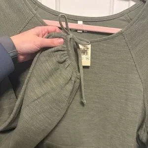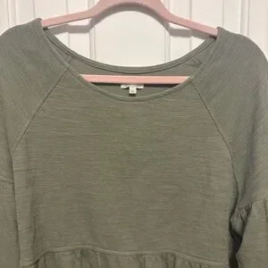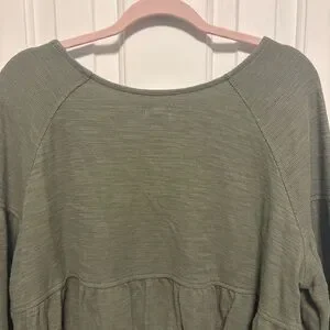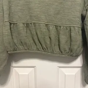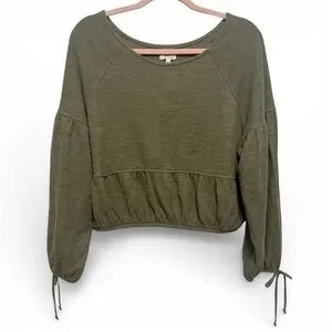 Aerie Endless Summer Cropped Sweatshirt Womens Small Olive Green Long Tie Sleeve
