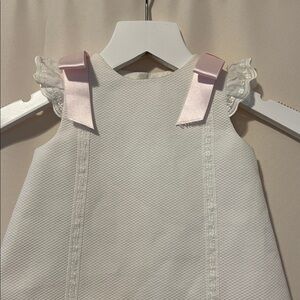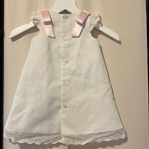 Luli & Me Timeless A Line white pique dress w/pink embroidery and bows size 6M