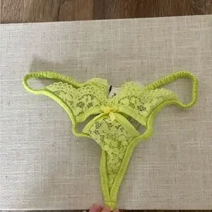 Vibrant neon lace thong. Features delicate detailing.