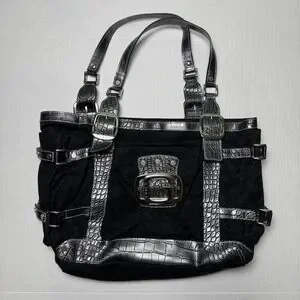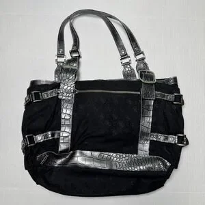 Vintage Y2K Guess Monogram Shoulder Tote Bag Rocker Glam Grunge Indie Sleaze