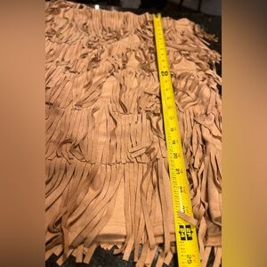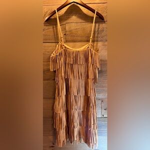 TRIXXI TAN VEGAN SUEDE LAYERED FRINGE FESTIVAL SHORT DRESS