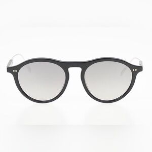 Stylish round sunglasses by Tod's. Black frames with sleek silver arms. Perfect for a modern look.