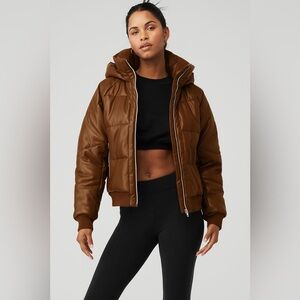 Alo Faux Leather Boss Puffer jacket in cinnamon brown L