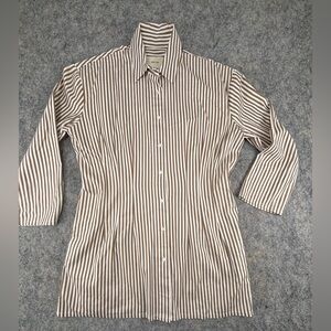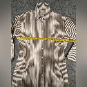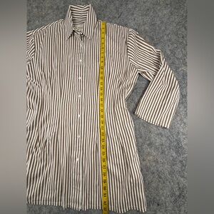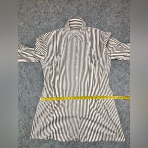 Like new! No known flaws. With its wide sleeves and waist-defining darts, this shirtdress is anything but ordinary. It’s cut from crisp stretch-cotton in a chic white-on-beige stripe and finished with a buttoned placket (undo a few up top to highlight a necklace).