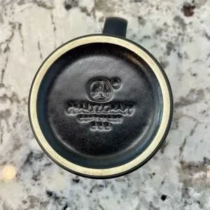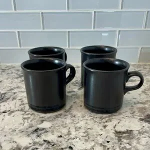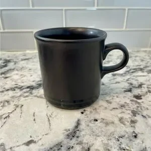 * The mug has a black exterior glaze with a matte finish and a glossy interior.