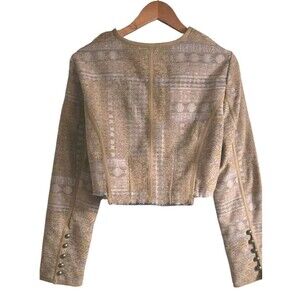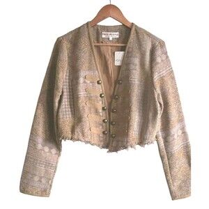 Free People Juliette Cropped Tan Jacket Raw Hem Tapestry Women's Large NWT