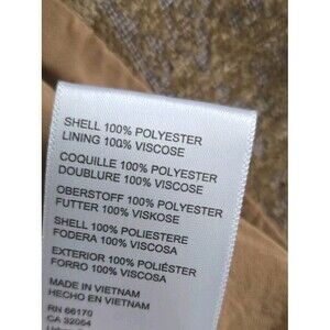 Embrace the bohemian spirit with this Free People Juliette military jacket. The jacket features a unique tapestry fabric with a geometric pattern in brown, perfect for any season. The jacket is equipped with a hook and eye closure, long sleeves, and fringe accents for a touch of elegance.
