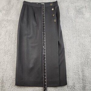 Vintage Women’s Wool Skirt Black Wrap Gold Buttons Lined Maxi USA Made Size 8