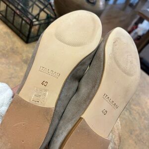 Step out in style with these elegant taupe suede flats. Perfect for any occasion, these shoes offer both comfort and sophistication. Great neutral shoe that will go with just about anything. Size 40(9.5)