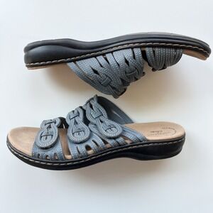 Clarks Leisa Faye Blue Leather Slide Sandals Womens 8 Comfort Casual
