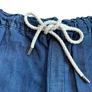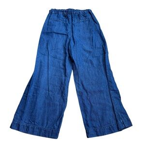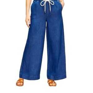 LOFT Wide Leg JEANS Sz Med Elastic Pull On Drawstring Denim Baggy Cotton Linen