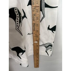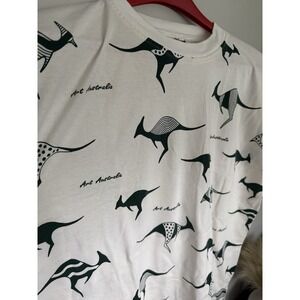 This Vintage Art Australia shirt for men in size Large features a black golf graphic with a kangaroo motif all over it, giving off a retro 90s vibe. The shirt is made of comfortable cotton material and has a crew neck and short sleeves, making it suitable for casual wear. The design theme incorporates elements of nature, wildlife, and travel, perfect for fans of art, animals, and hipster culture. Ideal for vacation outings or simply adding a unique touch to your wardrobe, this shirt is a must-have for those looking for a stylish and nostalgic addition to their collection.