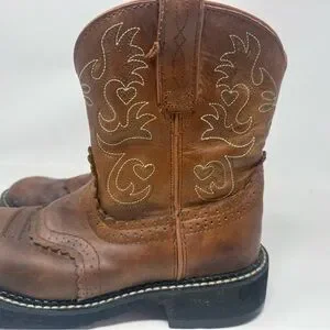 Ariat Fatbaby Saddle Cowboy Boots 7.5B Brown Cowgirl Western Rodeo Pull On