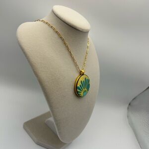 Leighelena Artisan Necklace Yellow Blue Magnetic Pendant Oval Link Gold-tone 18"