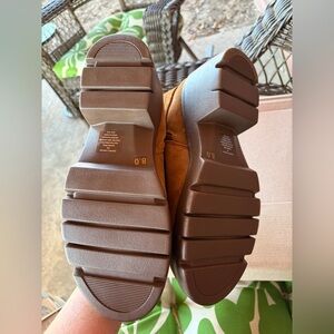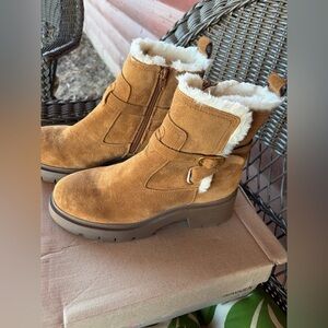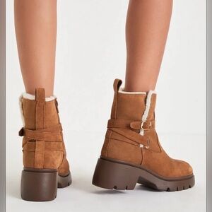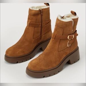 Steve Madden Colletta lug-sole buckle booties camel suede faux-fur lining Fall