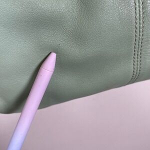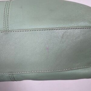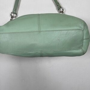 Keywords: Coach bag, leather purse, hobo bag, shoulder bag, green handbag, light green, designer purse, everyday bag, casual style, silver hardware, pleated detail, fashion accessory