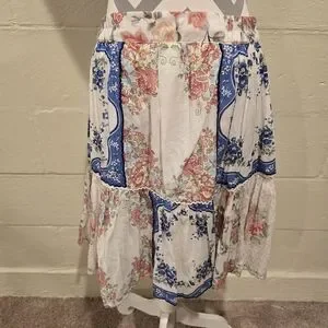 The Sister Mary Women's Chiquita Skirt in size small is a vibrant and stylish piece made from 100% cotton. The patchwork design in a multicolor palette adds a fun and eclectic touch to the knee-length skirt, perfect for various occasions like travel, weddings, parties, casual outings, or business meetings. The skirt features a pull-on closure, elastic waist for comfort, and is machine washable for easy care. With a flare style and tiered accents, this skirt embodies a bohemian and flower-inspired theme, making it a standout piece for the spring and summer seasons.