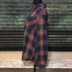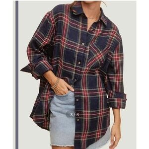 LA MIEL Women’s Avril shirt. Blue plaid. Long sleeve. Button front. Flannel. Cotton blend. Loose fitting. Size Medium