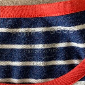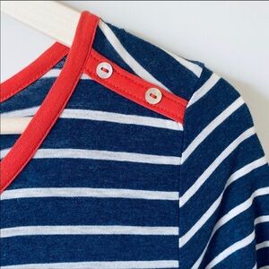 Anthro Pure + Good Navy Striped Cotton Dress with Red/Orange Neckline and Button Trim
