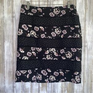 White House Black Market Black & Floral Strip Skirt